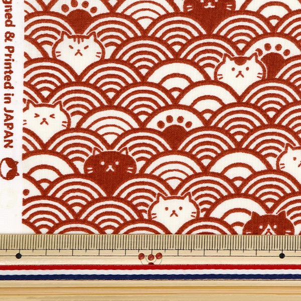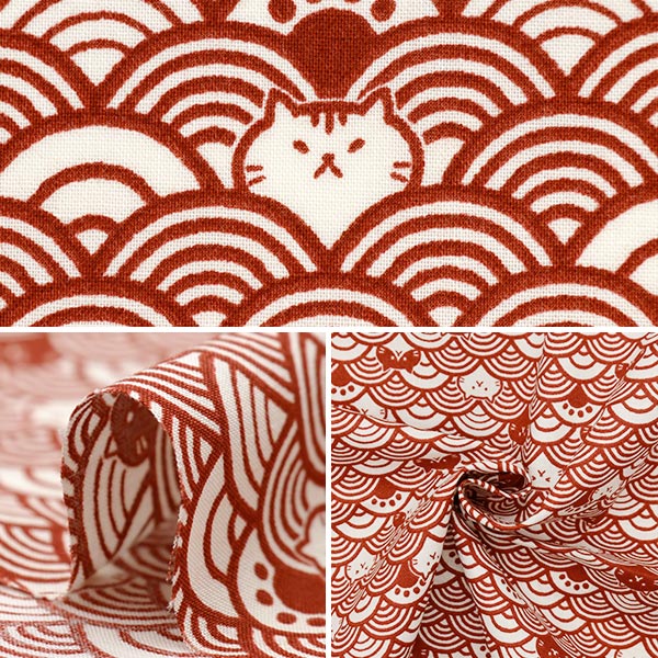 青海波に猫ちゃんが紛れ込んでいる、和風のスケア生地。