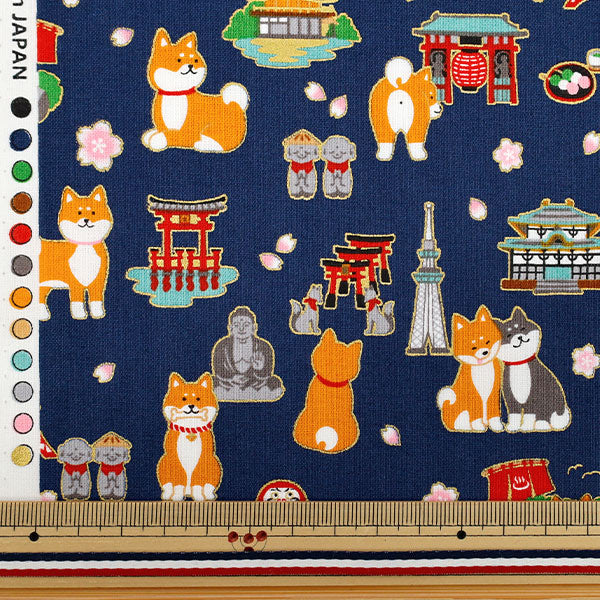 [ソーイング ハンドメイド 手作り 布 雑貨 袋物 ランチョンマット クッション 柴犬柄 いきもの 和柄 紺]