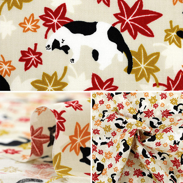 【数量5から】 生地 『シーチング ハチワレ猫紅葉 アイボリー YZ55902-1A』