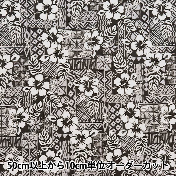 【数量5から】 生地 『T/C ハワイアンプリント パターン ブラック 205042-24』