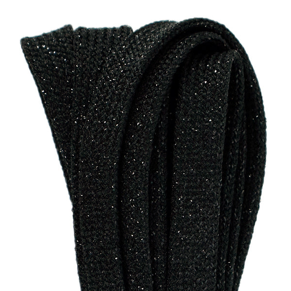 ラメ糸がキラキラ輝く、ポリエステル製の平ひもです。