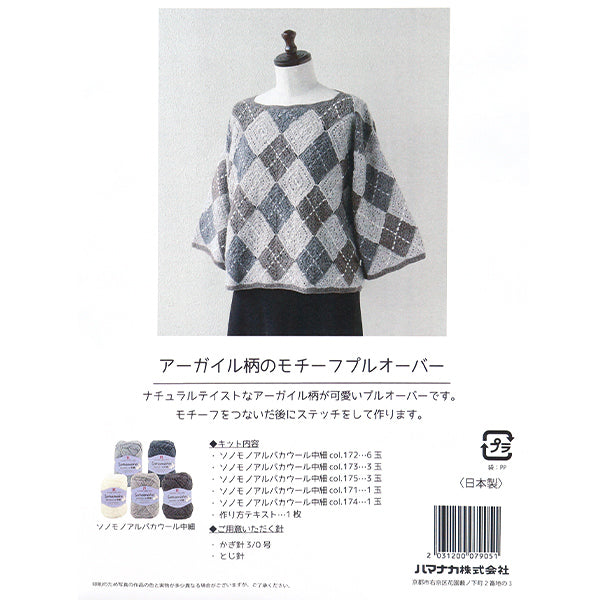 編み物キット 『アーガイル柄のモチーフプルオーバー 145-243-105』 Hamanaka ハマナカ