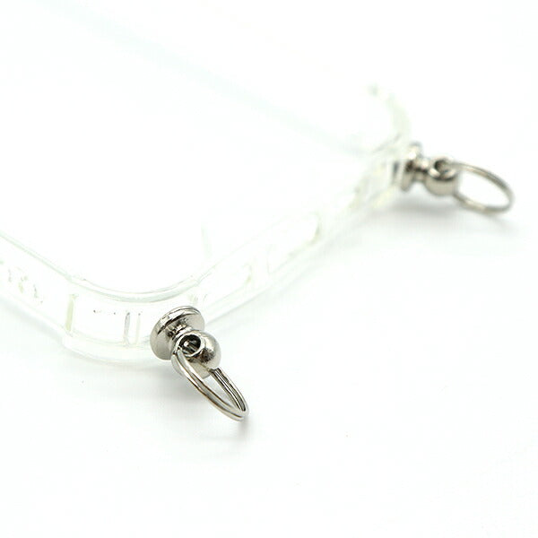 ネックストラップを付けられるように、カンがついたiPhone用のクリアケースです。