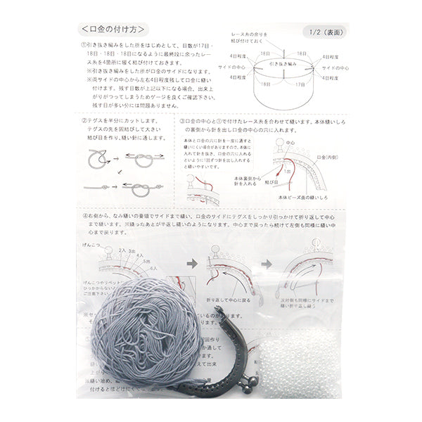 ビーズキット 『ビーズクロッシェで作るラウンドがま口 ライトグレー×クリア』