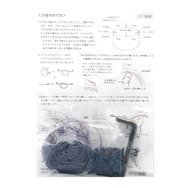 ビーズを糸に通し、レース針で編む技法「ビーズクロッシェ」で編み上げるがま口キットです。