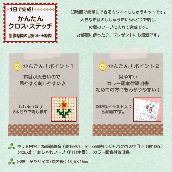 はじめての方でも楽しめるかんたんクロス・ステッチキットです。