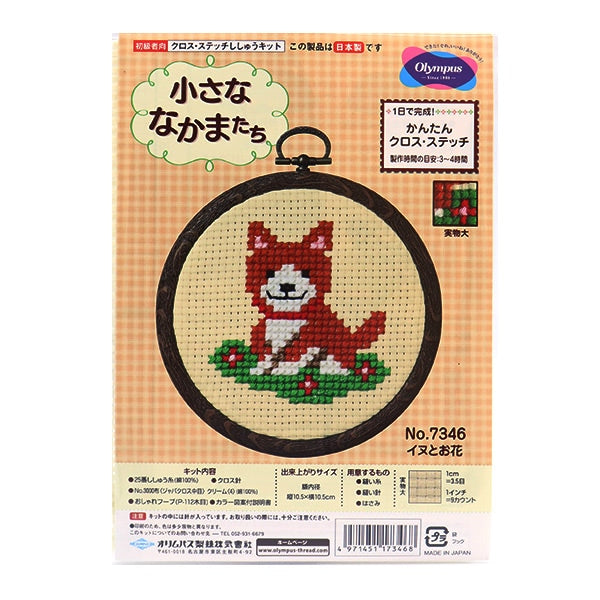 刺しゅうキット 『小さななかまたち クロスステッチ イヌとお花 7346』 Olympus オリムパス
