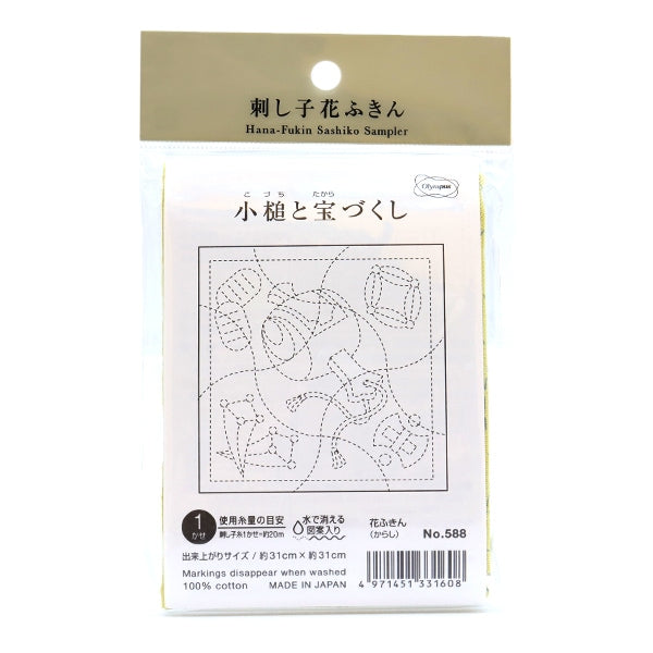 刺しゅう布 『刺し子 花ふきん 布パック 小槌と宝づくし からし 588』 Olympus オリムパス