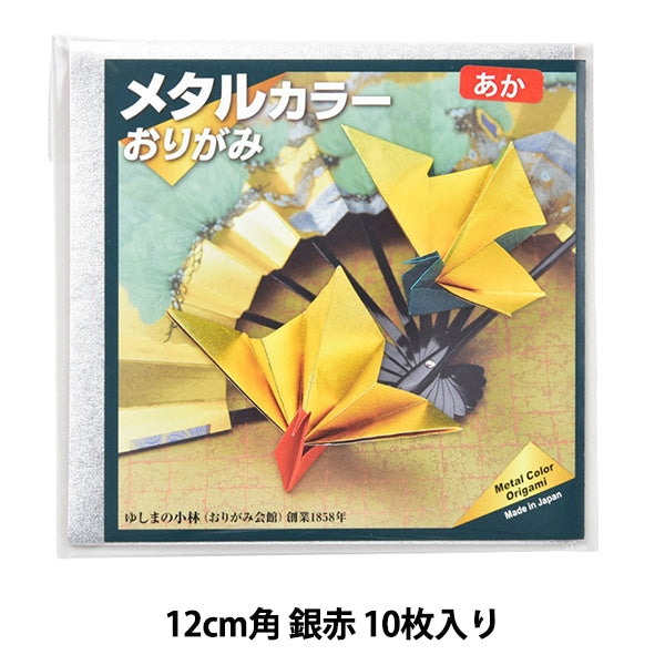 折り紙 千代紙 『メタルカラーおりがみ 12cm角 銀赤 10枚入り』