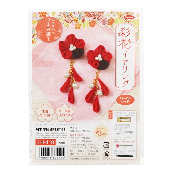 手芸キット 『つまみ細工 彩花イヤリング レッド LH-418』 Panami パナミ タカギ繊維
