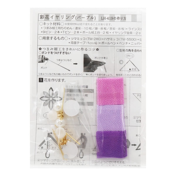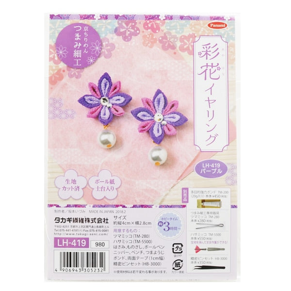 手芸キット 『つまみ細工 彩花イヤリング パープル LH-419』 Panami パナミ タカギ繊維
