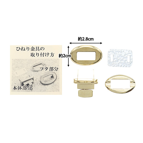 かばん材料 『ひねり金具楕円型 ゴールド HKD-G』