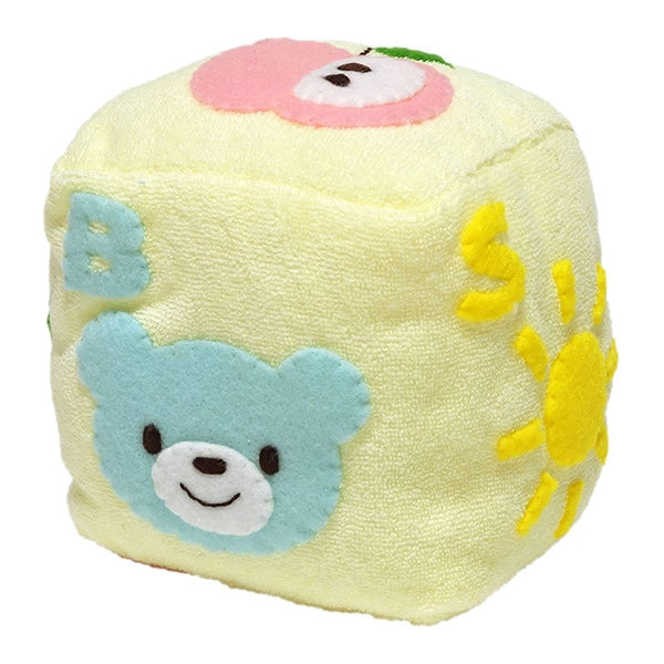 这是一个柔软而温柔的布,带有可爱的图案和字母。