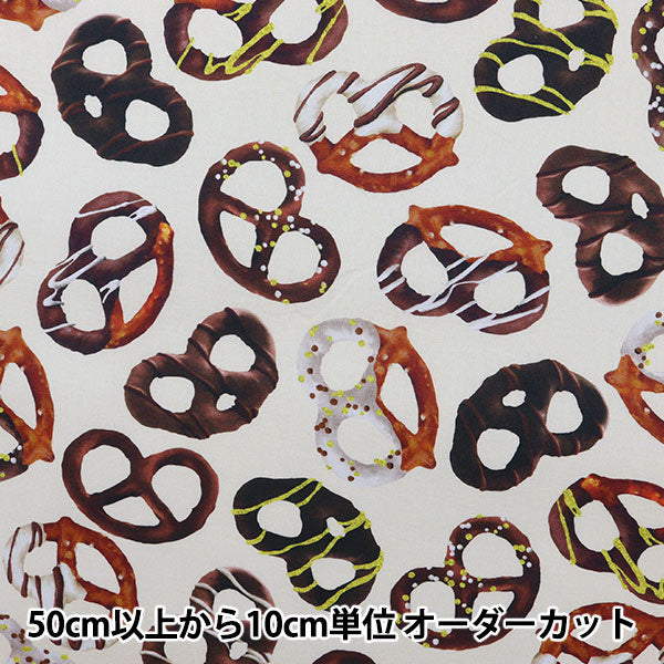 [来自数量5] 织物 “喷墨印刷巧克力椒盐脆饼9845-07”美国棉花