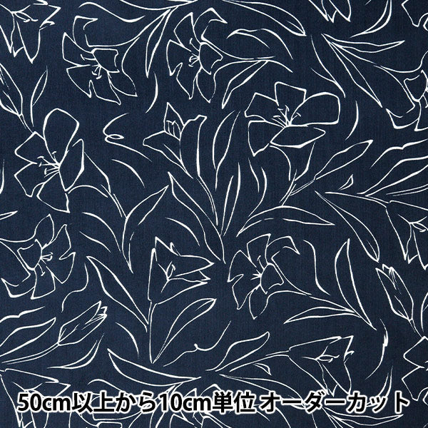 [来自数量5] 织物 “ 21W灯芯绒软工厂线绘制花朵图案海军cor21p-lf-nv”