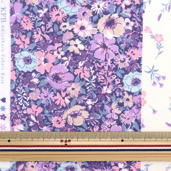 这是一个带有两个侧面边框图案的平板布,可以享受可爱的两种花卉图案。