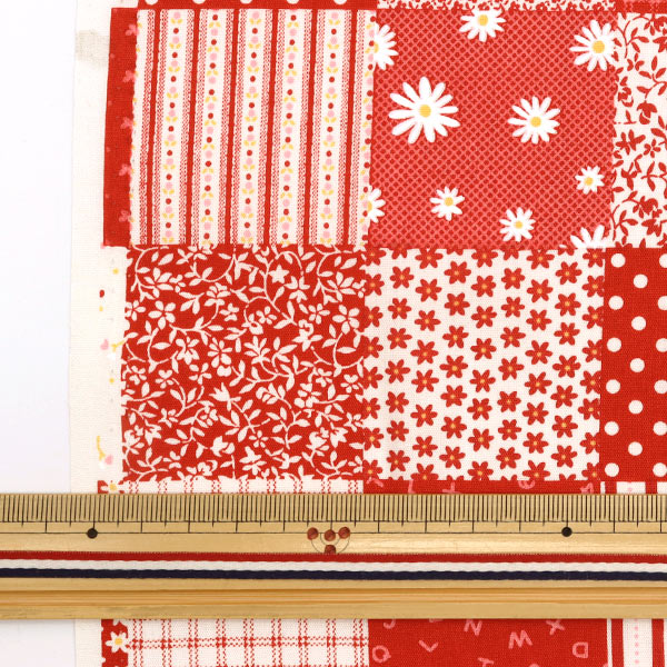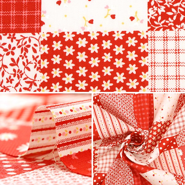 流行紅色織物但拼布像不知所措的圖案的設計。