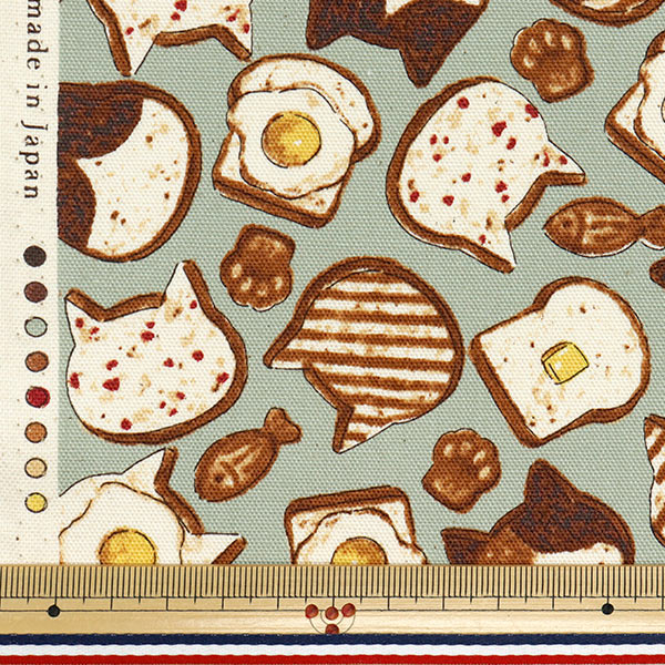 猫咪造型的吐司面包、烤好的面包上美味的荷包蛋和黄油,撩动爱猫人士的心的独特设计牛津布織物。