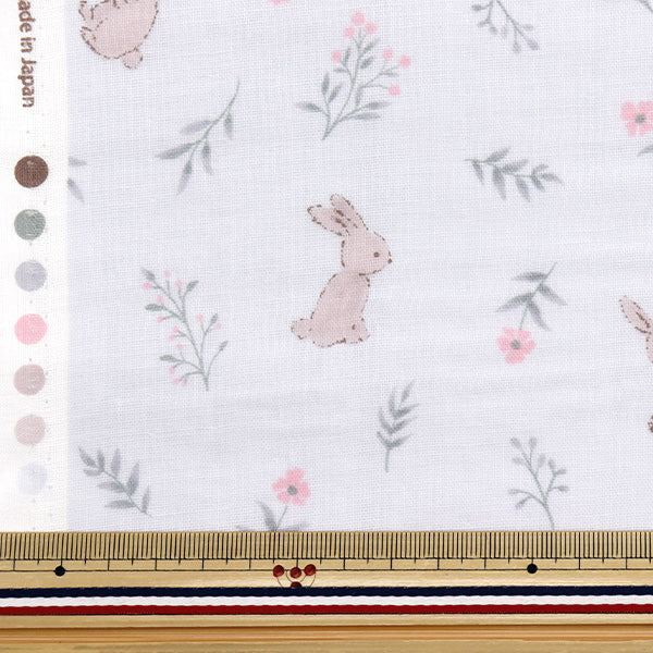 [雙層紗布 双纱布双纱布婴儿儿童布兔子植物鲜花淡紫色]