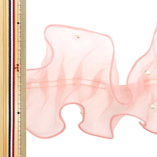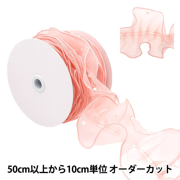 [數量5]種族“與珍珠大約11厘米桃子的褶邊花邊”